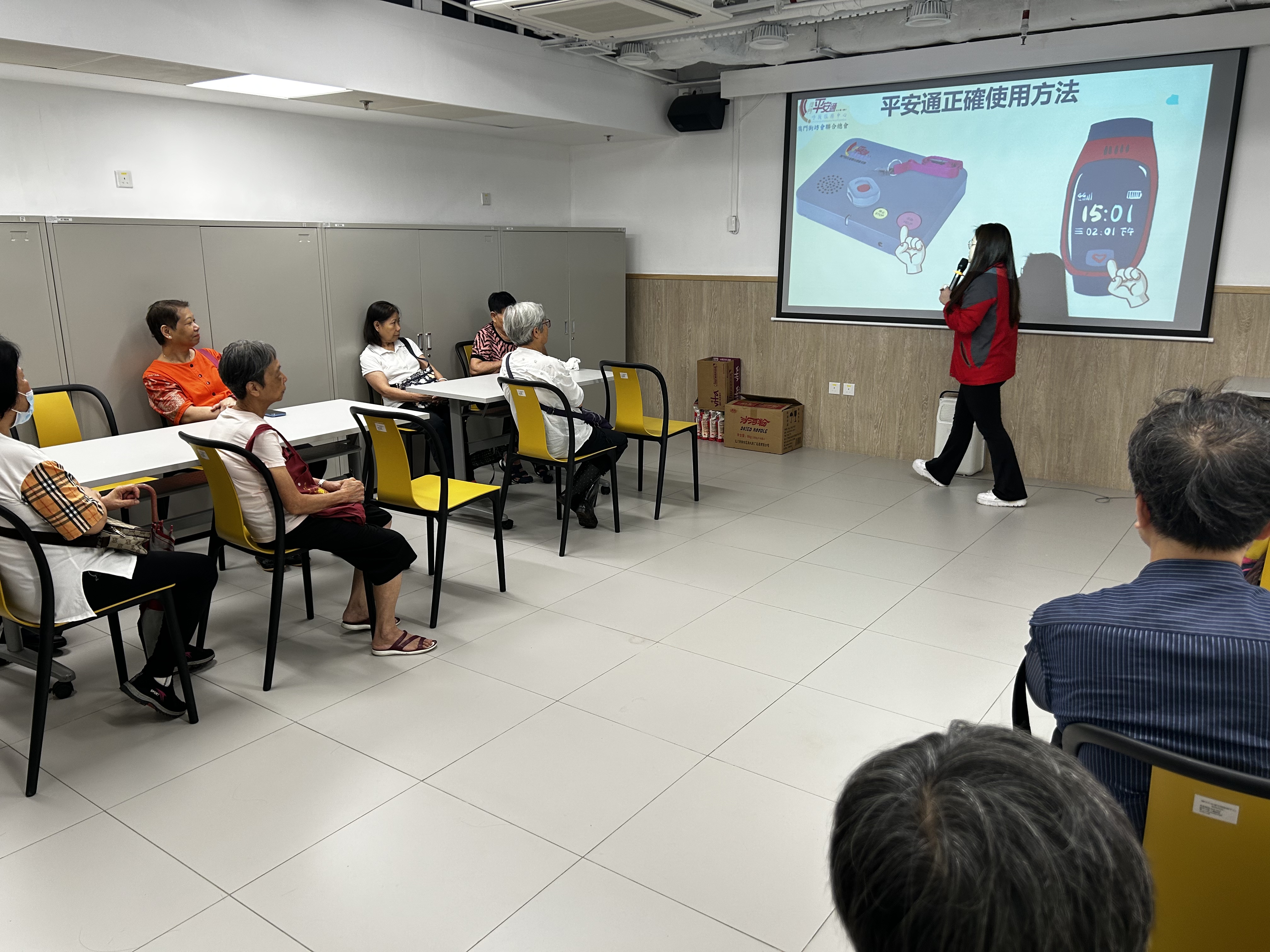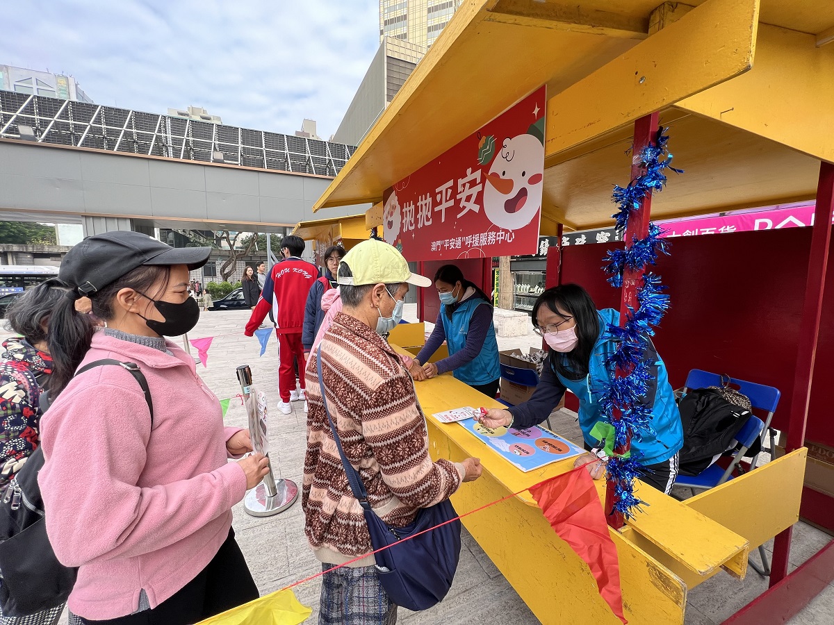 活動假康公廟前地舉行。澳門社工局長者服務處羅淑霞處長、香港長者安居協會李岳名顧問、澳門街坊會聯合總會李漢基名譽會長、“平安通”用戶代表梁照先生、“平安通”義工代表劉華勇女士及“平安通”梁詠恩經理主持開幕式。